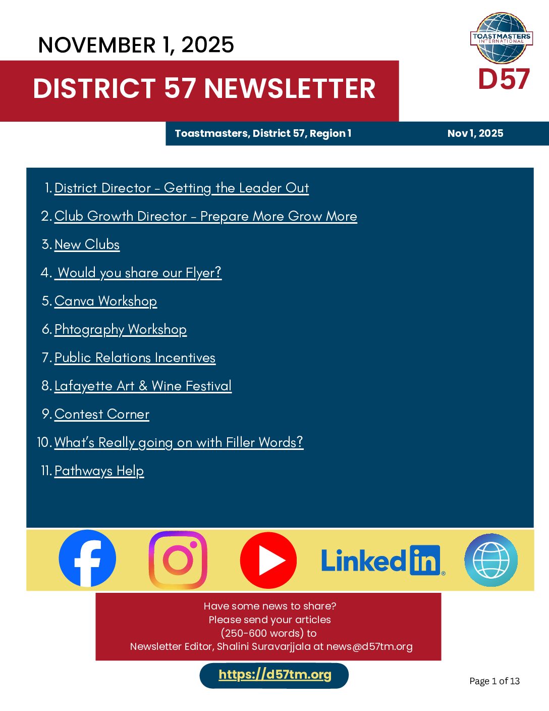 Catch up on all the latest news and updates from District 57 through our newsletter archive. Here, you can browse past editions of both our monthly Dispatch and the weekly Digest, featuring important announcements, event highlights, member spotlights, and more. Whether you missed an issue or want to revisit key information, this archive is a great resource to stay informed and connected with our community.